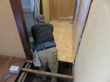 内容は既存床の撤去、床の張替えなのですがひと昔とは違い現在のフローリングには、ほぼ合板の捨て貼りが必要となっております。