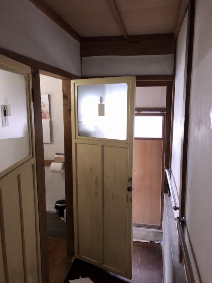 改修前のトイレは、男子小便器と大便器の2つの部屋にわかれていて、それらを1つの部屋にして車椅子でも入れるようにしたいとのご要望でした。